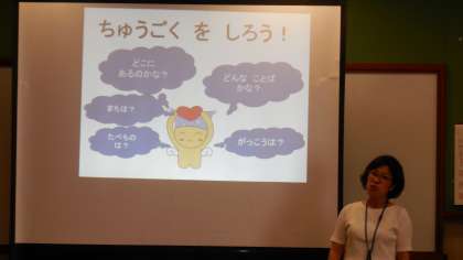 多文化の学習で中国について学習しました。中国の文化や学校の様子についてゲストティーチャーに教えていただきました。