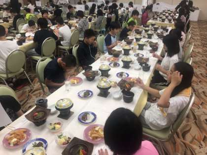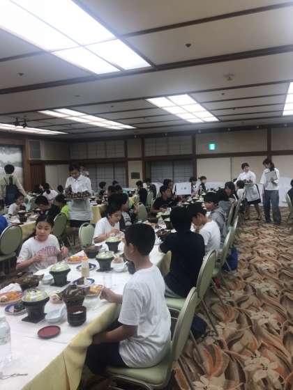 みんな楽しみにしていた夕食の時間です。お腹へった〜!とお風呂の時から言っている子どもたち。子どもたちに人気なメニューを喜んで食べています。