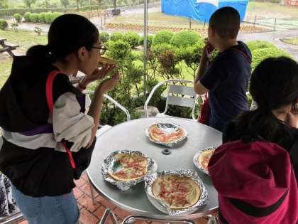 グループ写真を撮って、お昼ご飯をたのしんでいます。