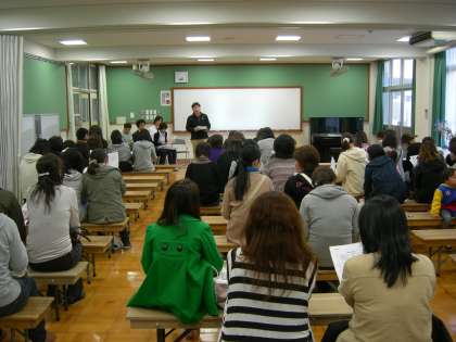 学級懇談会の間,親を待つ子どもたちは図書室や理科室で学習しながら待ちました。
