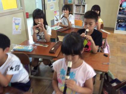 リコーダーの学習が始まりました。初めはタンギングが難しく,みんなきれいな音色を出すことに苦戦していました。これから少しずつ練習を重ねて美しい音を奏でてほしいと思います。