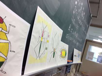「昆虫とはどんな生き物なのか。」を図鑑の資料を使って調べました。見つけた特徴を集めてどんな生き物が昆虫なのかをクラスでまとめました。そう考えると「ダンゴムシは…」「バッタは…」「くもは…」といろいろな生き物が昆虫なのか,そうでないのかがわかりました。
