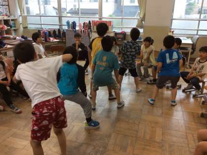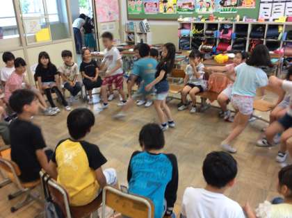 誕生日の子が選んだ遊びが「椅子取りゲーム」だったので中間休みになんでもバスケットを行いました。椅子に座ろうと一生懸命な子と椅子に座れなくて鬼になるのを楽しむ子と…いろいろな楽しみ方をしていました。