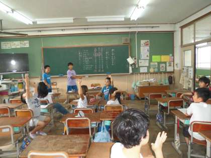 最後は,町代表の6年生が提案してくれたなかよし遊びです。大きい学年の子は小さい学年の子にやさしく気づかいをしながらも,自分たちも喜んで遊んでいました。