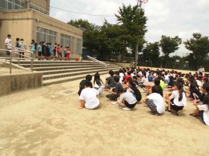 優勝したクラスは,なんとなんと400回越え! 見ていた外国語講師のレオ先生が,「これはクラス作りにいいメニューだ。」と絶賛。