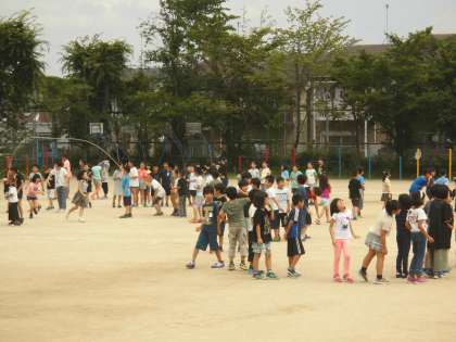 練習を重ねてきた大なわ大会,今日は3年生4年生6年生の本番です。