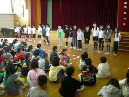 583名が並ぶので6年生は体育館の後ろに並びます。