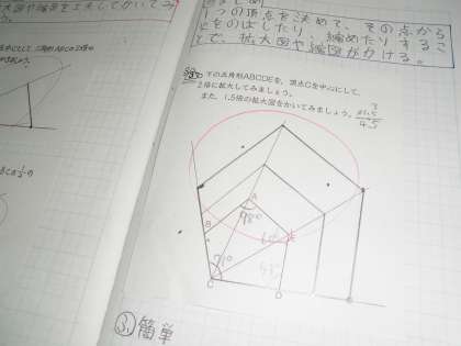 ある1点を中心にして,拡大や縮小した図をかきます。