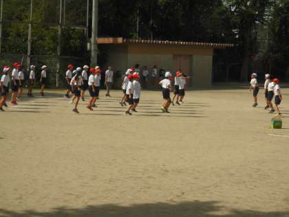 今日は,「トン,1,2,3」のリズムで飛び越してみて,自分のインターバルを確かめました。