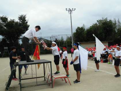 開会式や選手宣誓の様子です。団長さんの迫力に,みんなの気持ちもひきしまりました。