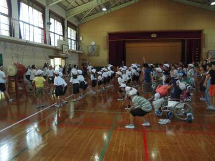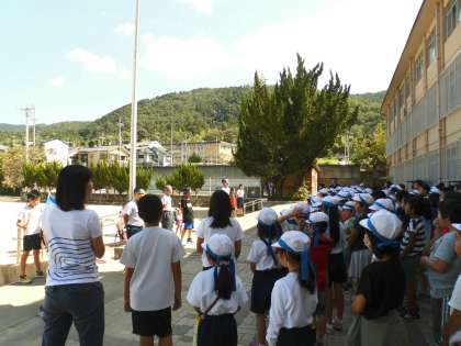 中間休みに,色別全校練習がありました。