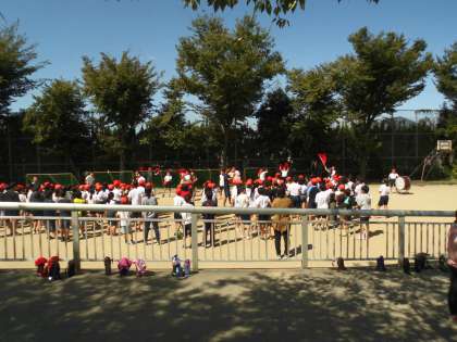 ますます気迫のこもる応援団に加えて,各色のみんなも盛り上がってきました。あちこちから元気いっぱいの声が聞こえてきて,学校はもう運動会一色です。