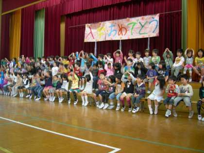 全校ゲームや歌の後,1年生からお礼の言葉と元気な歌を聞きました。