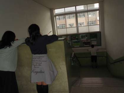 物語から自分の思いを広げ,絵に表しました。今日は,友だちの作品のかんしょう会をしました。友達の作品の表現のすばらしいところをたくさん見つけて,カードにかきました。