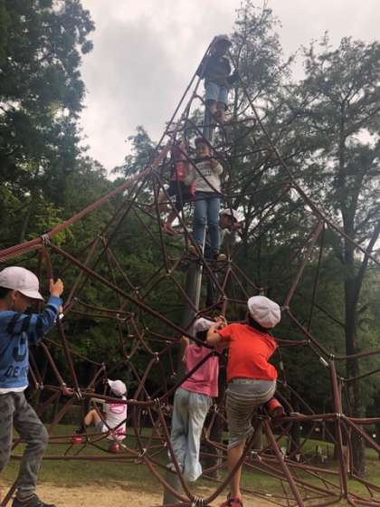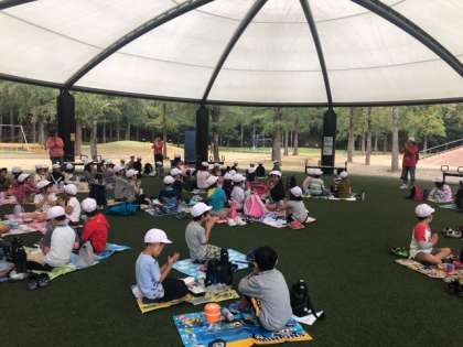 元気いっぱい遊んだので,お腹が空いてきたようです。少し早目のお弁当を食べ始めています。
