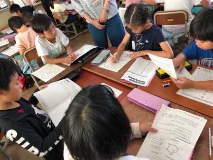 夏休みに取り組んだ結果をもとに作成された「エコライフ診断書」をもとに,自分の生活をふりかえりました。エコライフできたか,また出来なかったことは何か,今後の目標を考えました。グループでも話合いをすることで,よりエコライフについて自分たちにできることを考えることができたようです。ぜひ,ご家庭でも話題にしていただき,家庭でエコライフにチャレンジしてみてください。