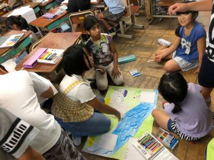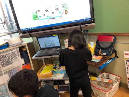 総合の学習で「わたしたちの合場川」について調べてきました。実際に,合場川に行って調べたり,地域の方にインタビューをしたりしました。調べたことをグループに分かれてまとめています。また,わからないことはさらに本やインターネットを使って調べを深めています。さまざまな発表方法があり,おもしろい発表会になりそうです。