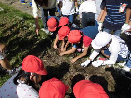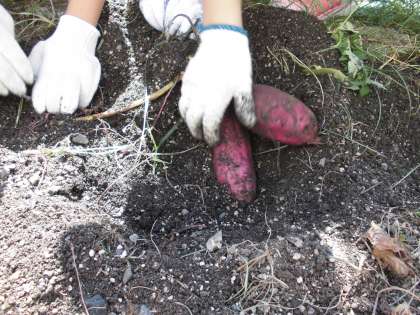 生活科で育ててきたサツマイモ。いい天気の中お芋ほりをしました。
