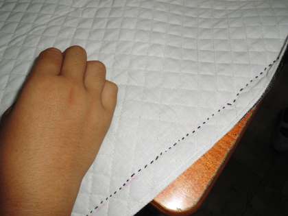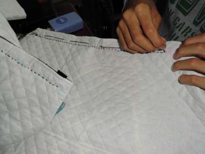キルティングの布は分厚くて縫いにくいのですが,ひと針ひと針・・・,見事な縫い目ですね。
