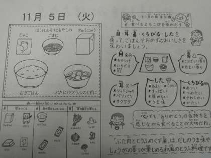 給食カレンダーでは,食の五感を使って味わって食べることを進めています。みんなはこの五感,全てわかるかな・・・?