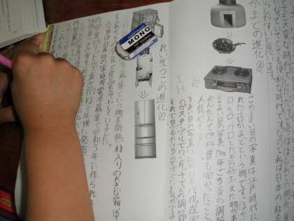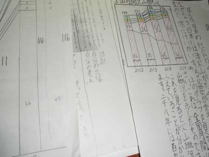 自分でテーマを決め,表やグラフなどの資料をもとに文章構成をしています。仕上がりまで,あと少しです。