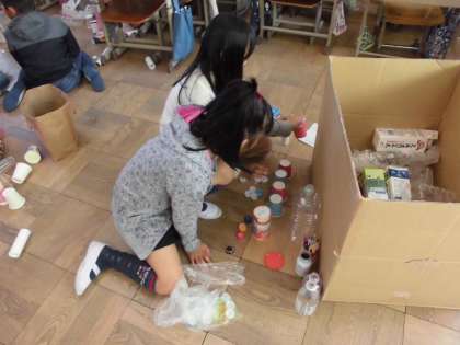 生活科で「あそんで ためして くふうして」の学習が始まりました。廃材を利用して,おもちゃを作り,みんなで遊びます。どうすれば楽しくなるのかを考え、工夫して学習を進めます。