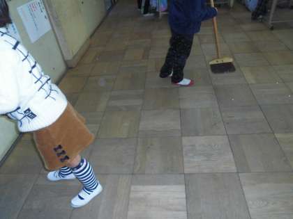 ほうきやちりとり,ぞうきんなど,掃除用具の使い方もじょうずになってきました。みんなかわいい働き者ばかりです。