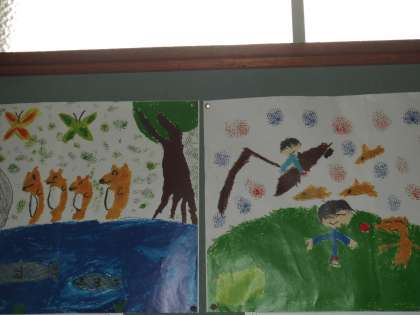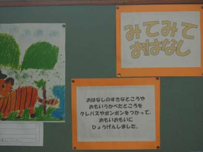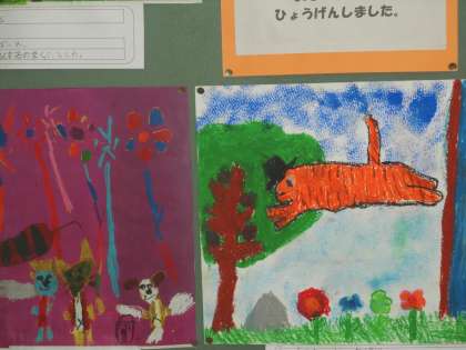 お話から好きな場面を選んだり想像したりして,絵に表しました。それぞれの思いが詰まっています。