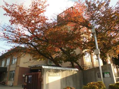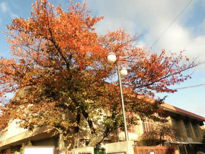 校門前のサクラの木が,すっかり紅葉しました。イチョウの木もきれいです。ライトアップでもすれば,ちょっとした観光名所になりそうです。