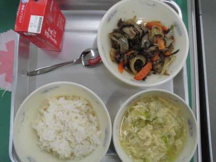 今日の給食は,麦ごはん・レタスと玉子のスープ・プルコギ・牛乳でした。