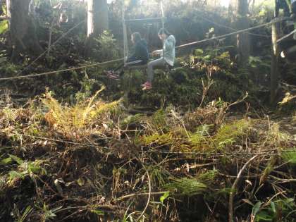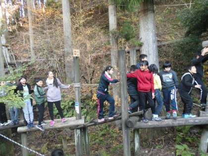 滑車を使った乗り物や木とロープで作られた塔などもあり,みんな楽しんでいました。