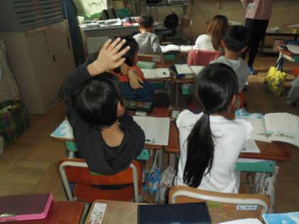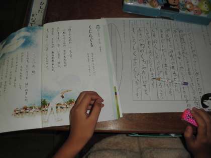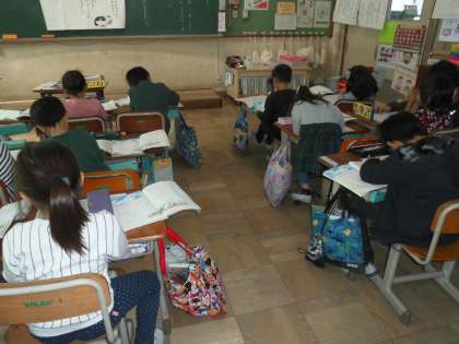 お話の中で好きなところを書きだし,音読の工夫に活かします。今日は,ワークシートを使って学習しました。