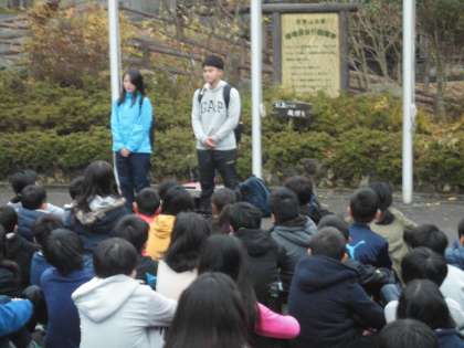 朝の集いでは,今日から2名の学生ボランティアに参加してもらい,いろいろとお世話になります。