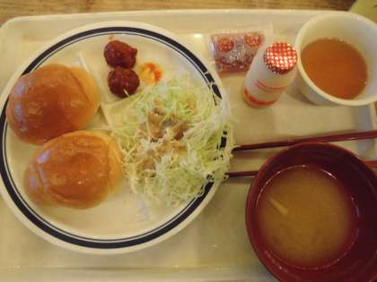 朝食です。ごはんより,パンを選ぶ子が多いようです。