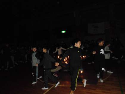 火の神からいただいた火をキャンドルに灯し,歌やゲームでおおいに盛り上がりました。