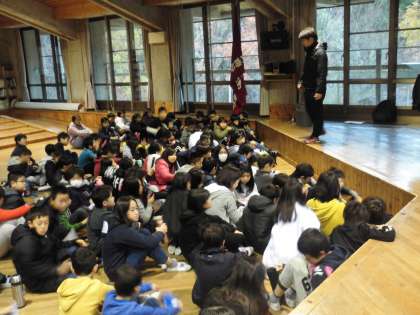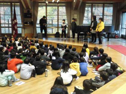 今日は,昨晩からの雨が残っているため,室内での朝の集いとなりました。