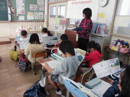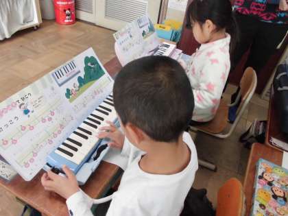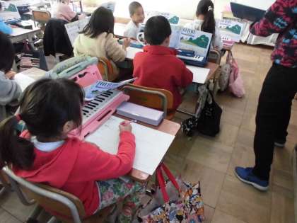今日は,「かっこう」の曲のけんばんハーモニカのテストです。