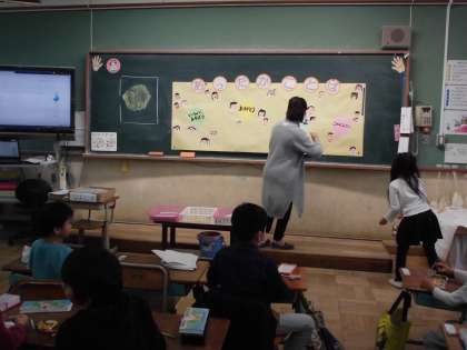 ひとりひとり,にっこり笑顔をかきました。けんかもするけど,お友達がいっぱいできましたね。
