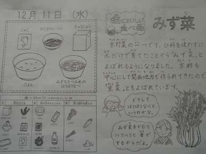 冬に美味しい野菜の一つとして,「水菜」を紹介します。水菜は,京野菜の一つで,水だけで育つことから「水菜」と言います。