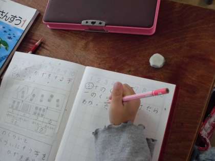 算数の授業の終わりには,1年生も「ふりかえり」をかいています。「めあて」にそって,その日学んだことを振り返り,自分の学びを整理します。「ふりかえり」を見ると,ひとりひとりの学びがよく分かります。