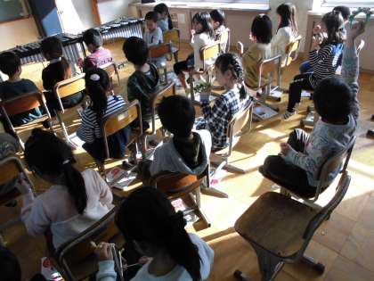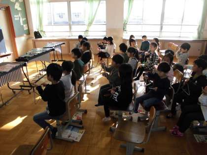 楽器の持ち方や演奏の仕方,先生の話をいっしょうけんめい聞いて,楽しく演奏できました。ひとりでやるより,やっぱりみんなと一緒が楽しいね。