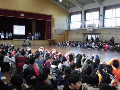 たてわりグループで並び,各委員会からの発表を聞きました。