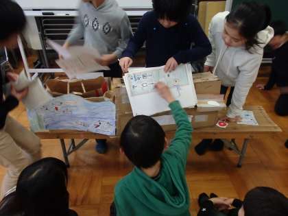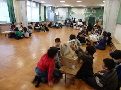 総合的な学習の時間で,「魚っとおどろく魚博士になろう」という学習をしました。栄養教諭や中央卸市場の方たちなどたくさんの方々に魚のことについて教えていただきました。お話を聞いたり,実際に魚に触れたり,調理をしたり,魚博士になった4年生。そして,学んだことを3年生に知らせようと,グループに分かれてまとめてきました。今日はいよいよ発表会です。3年生に魚のヒミツについてたくさんのことを知らせることができました。