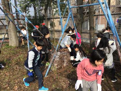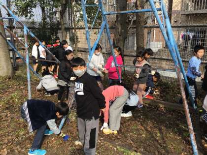 全校落ち葉ひろい大会がありました。クラスで協力してたくさんんお落ち葉を集めます。3年生も各クラス一致団結して取り組んでいました。