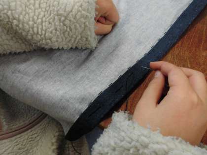 しつけ縫いの段階です。あまりに大きな縫いめの人も・・・!