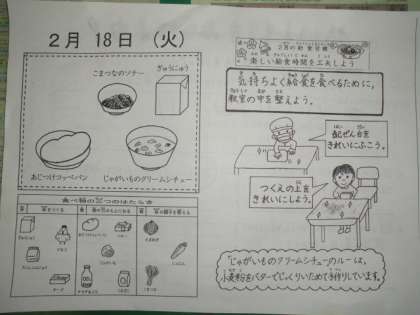 給食を気持ちよく食べるために,まず教室がきれいにされていますか?配膳題や自分の机も清潔に保つことが,おいしく給食をいただく第一歩です。