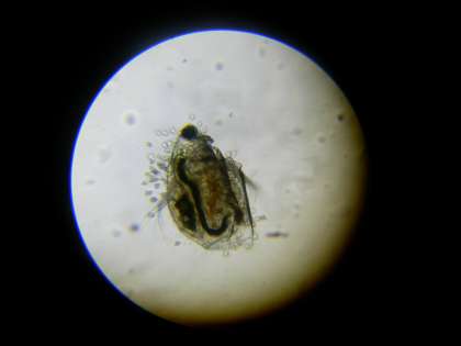 緑色の小さな生き物がくるくる回りながら動く様子やミジンコの体の中の血液の動く様子に驚きながら観察しました。休日参観に来られた方にも見てもらいました。