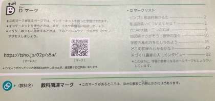 教科書の表紙をめくると,目次のページにQRコードがあります。