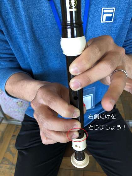 左手の薬指を置くあなは2つありますが,その右側のみとじるようにしましょう!
