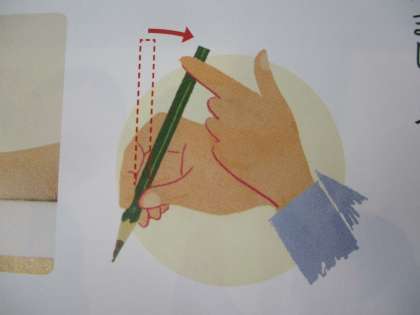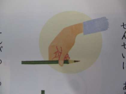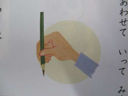 ただしい もちかたを すると,もじが きれいに かけるように なりますよ。